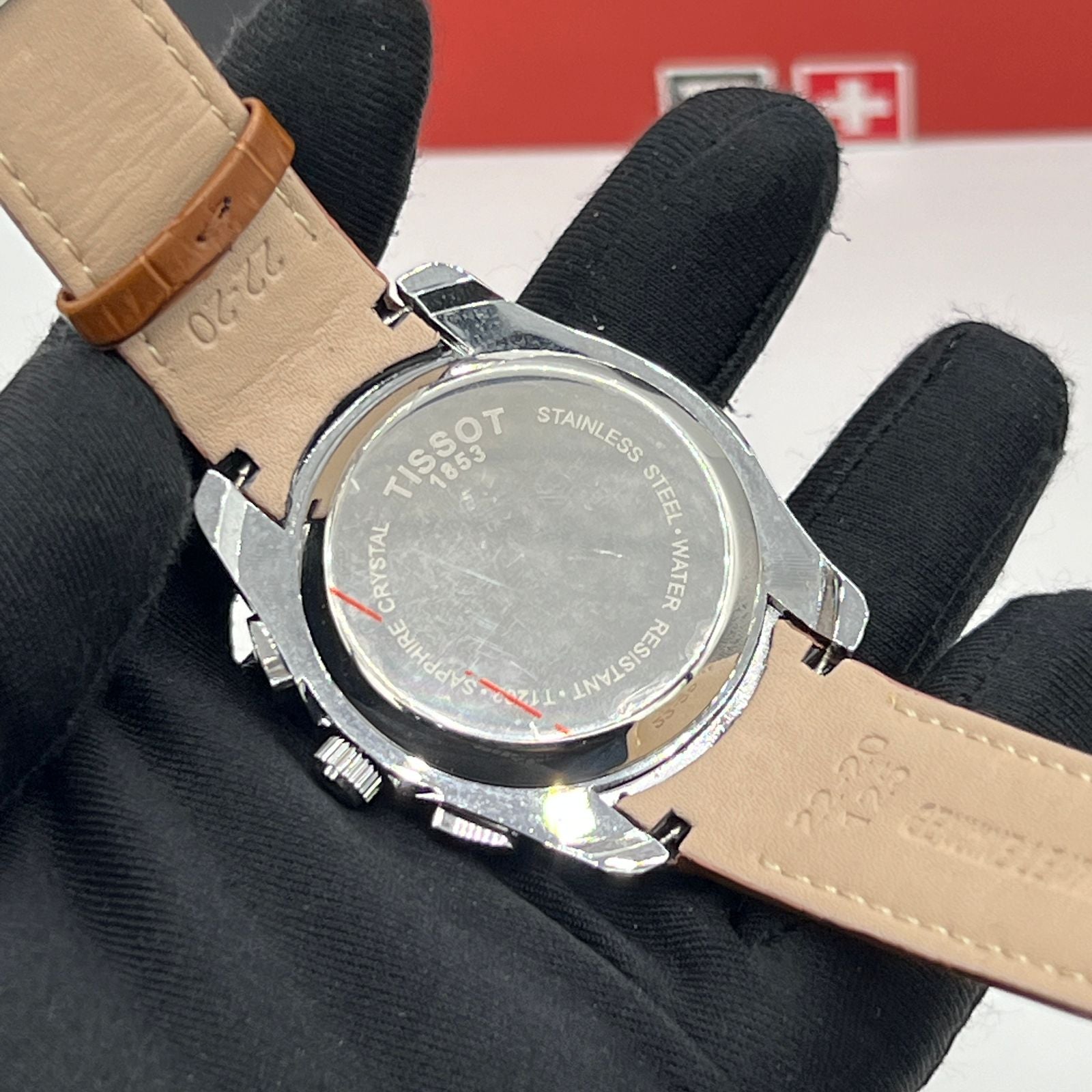 Premium quality Tissot style watch with elegant white chronograph dial and stylish brown leather strap. Stainless steel case aur luxury finish isay perfect banati hai formal aur casual wear ke liye. Comfortable fit aur premium look ke sath yeh watch aapki personality ko enhance karti hai.